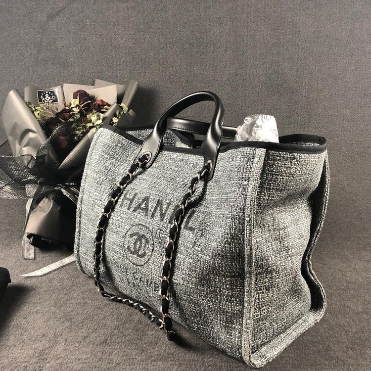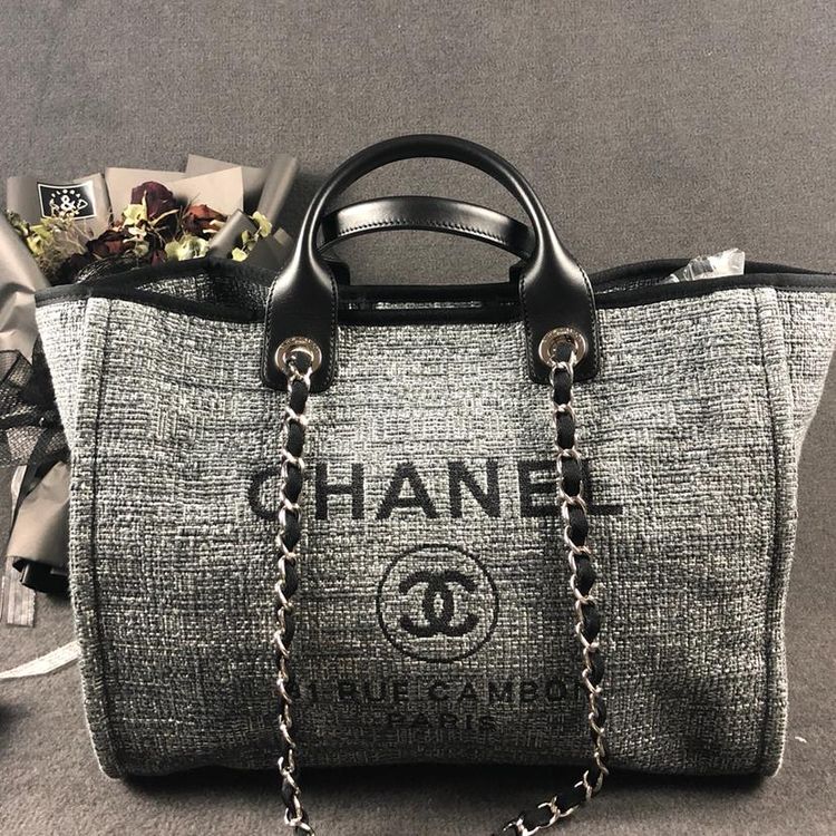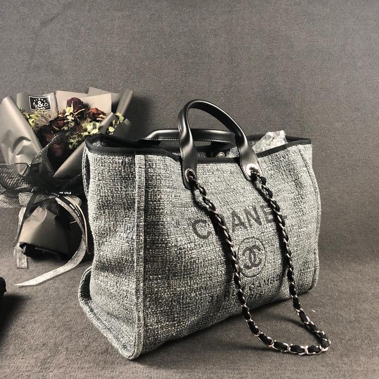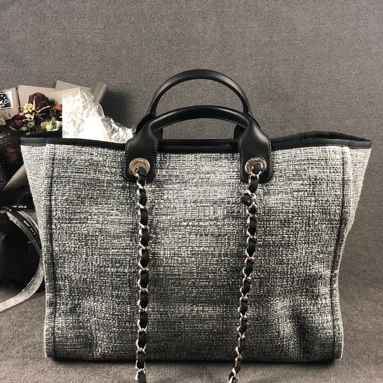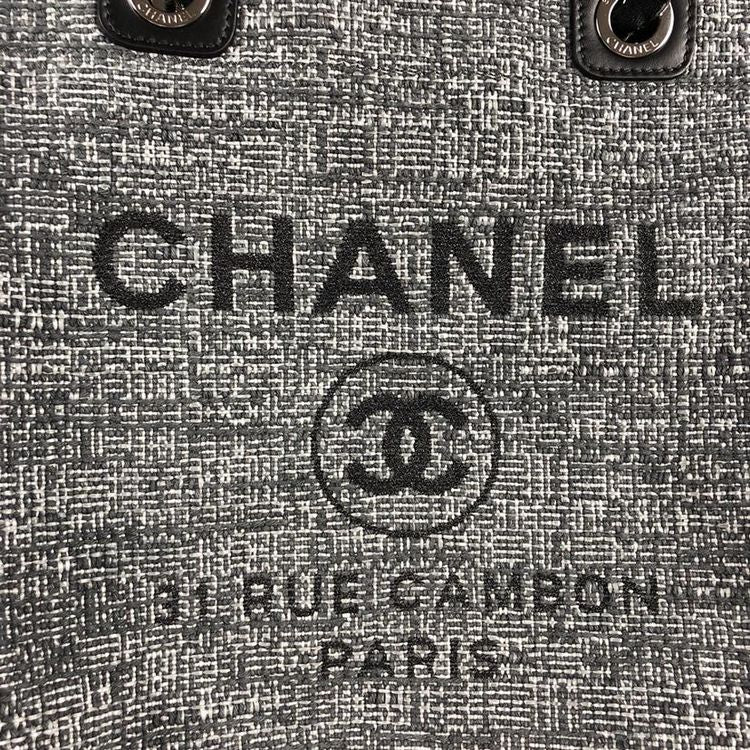【 CHANEL】シャネル 大きなチャコールキャンバスドーヴィルトートTOTE