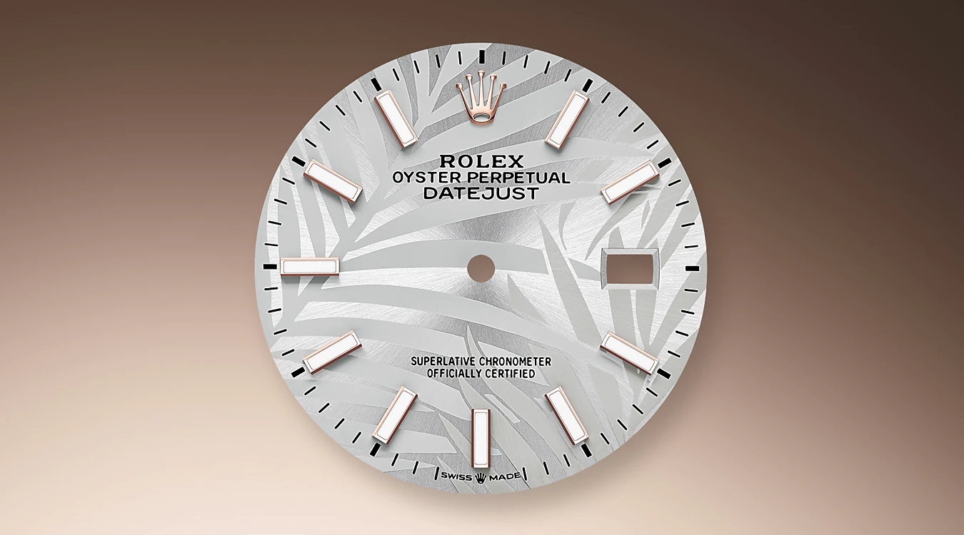 ダイアルは高い独自性と視認性を誇る ロレックスの顔である。変色しにくいゴールド製アワーマーカーが特徴的。すべてのロレックスのダイアルは デザインから製造まで自社内で行い 完璧を期すために大部分が手作業で行われている。