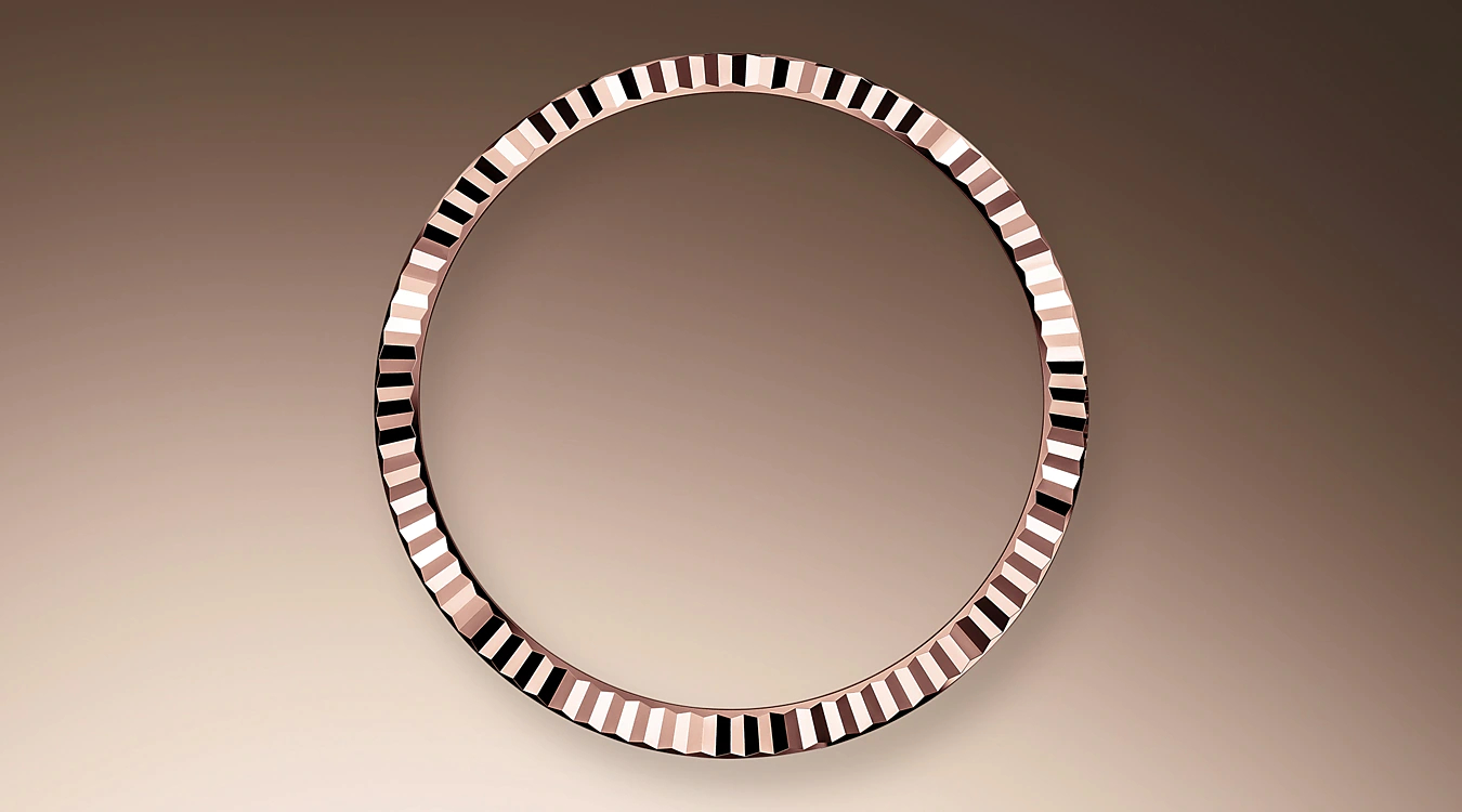 ロレックス フルーテッドベゼルは 卓越性の象徴。元来 オイスターベゼルの刻みにはベゼルをケースにねじ込み 時計の防水性能を確実にする機能的な目的があった。したがって その刻みはバックケースにも施されており 防水性能の維持という同じ理由で ロレックス独自のツールを用いてケースにねじ込まれていた。時を経て ベゼルの刻みはデザインの要素となり ロレックスのシンボルとなった。現在 フルーテッドベゼルは卓越性の象徴であり ゴールドのみで製造されている。