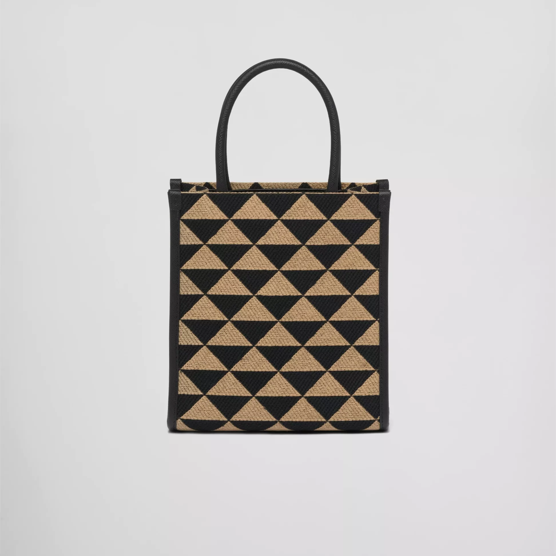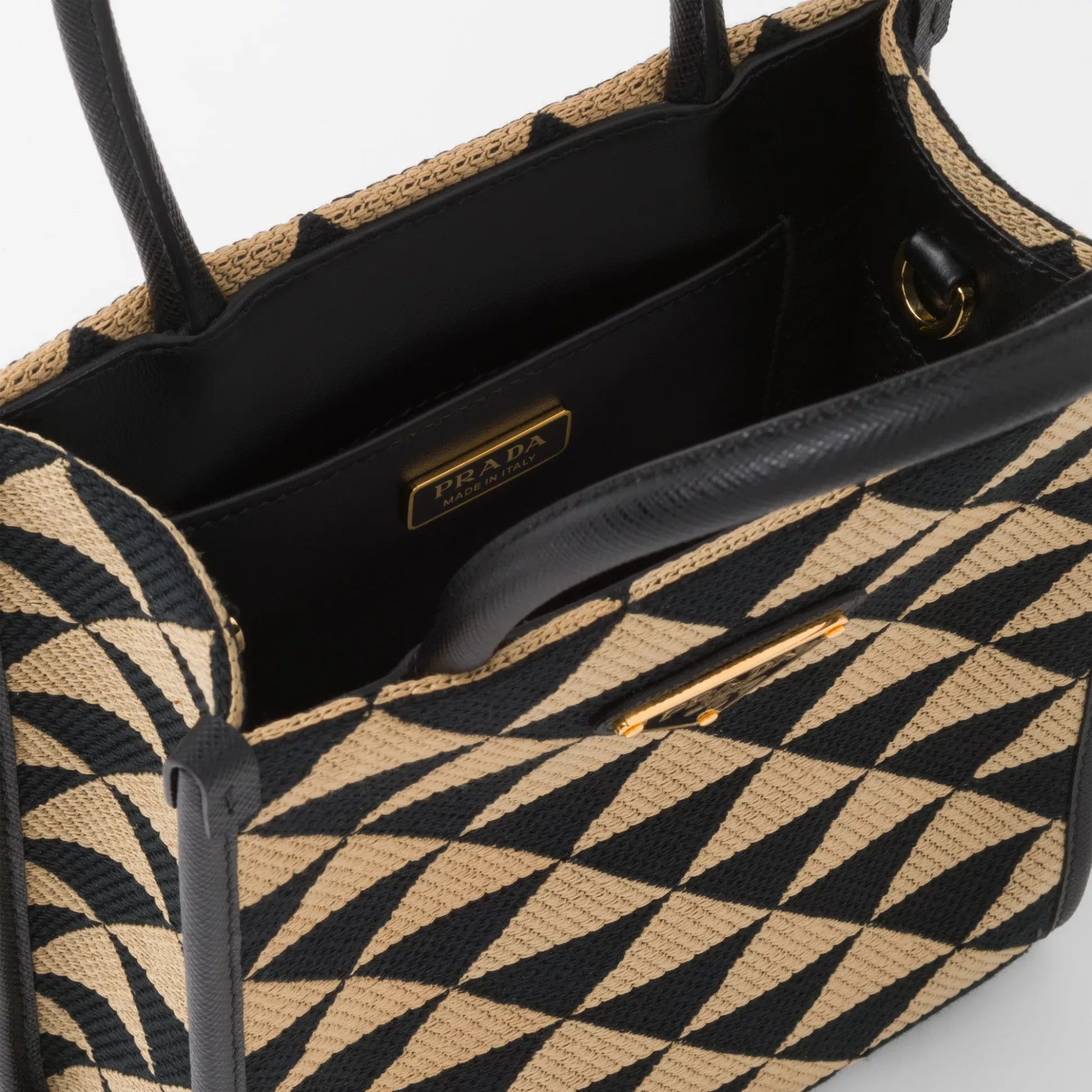 その幾何学的なデザインを、上品でありながらモダンなパターンにアレンジしてコントラストを効かせた、洗練されたシルエットのミニトートバッグ。