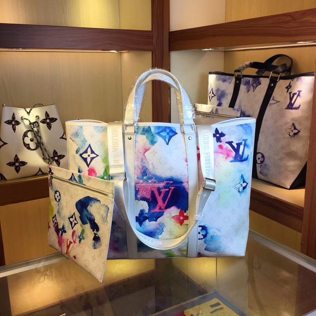 ルイヴィトンのアーカイヴから着想を得て、ブルーのウォーターカラーモノグラム キャンバスで仕立てた「ウィークエンドトート GM」。忙しい日や週末の外出に最適な、収納力抜群のアイテムです。スナップボタン付きの内側ポケットも魅力。「Louis Vuitton」シグネチャー入りの取外し可能なストラップで、クロスボディバッグとしてもお楽しみいただけます。