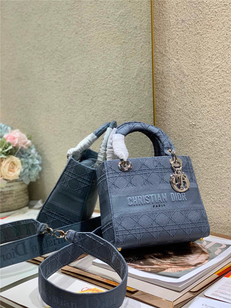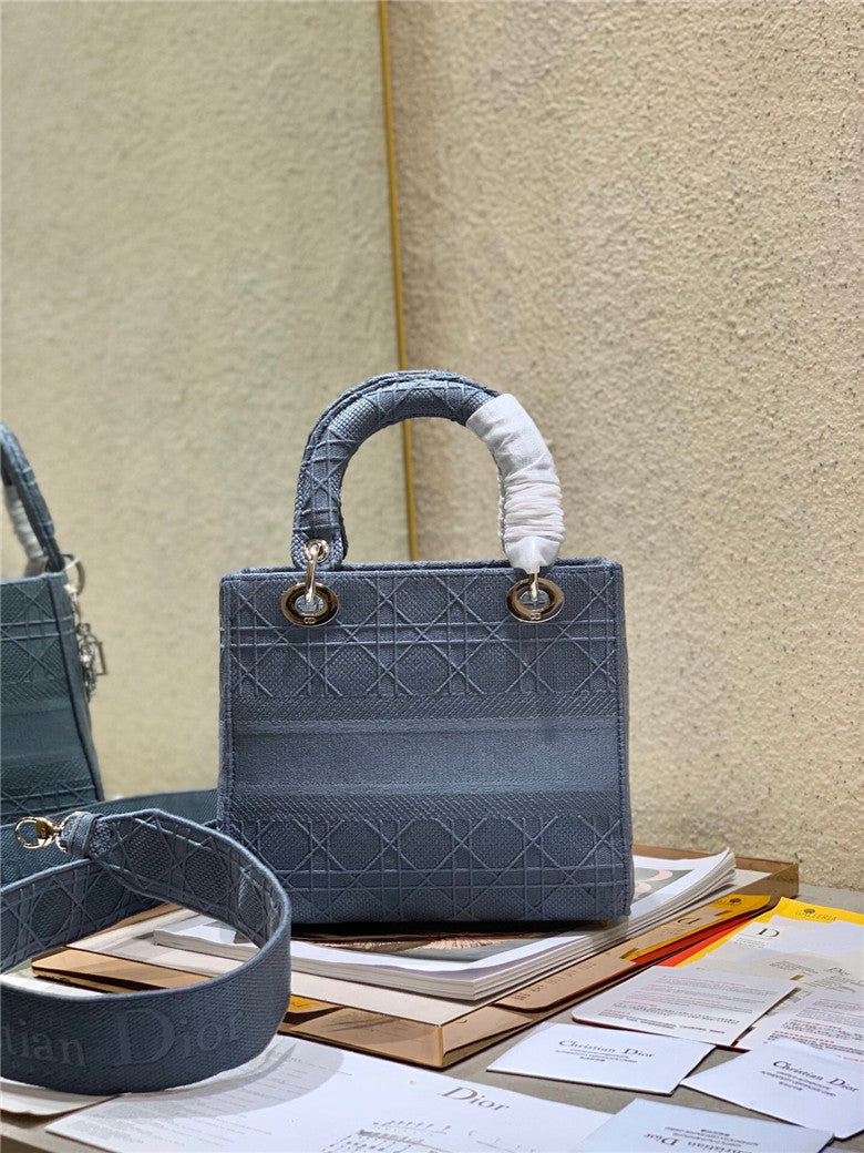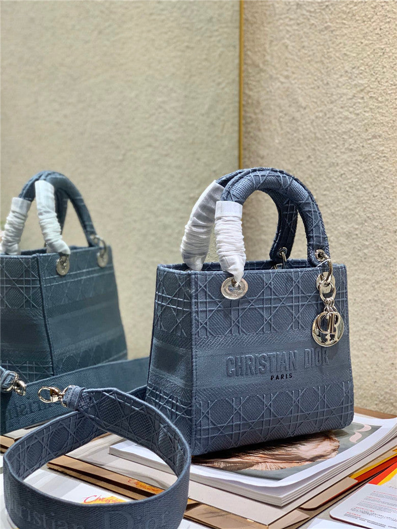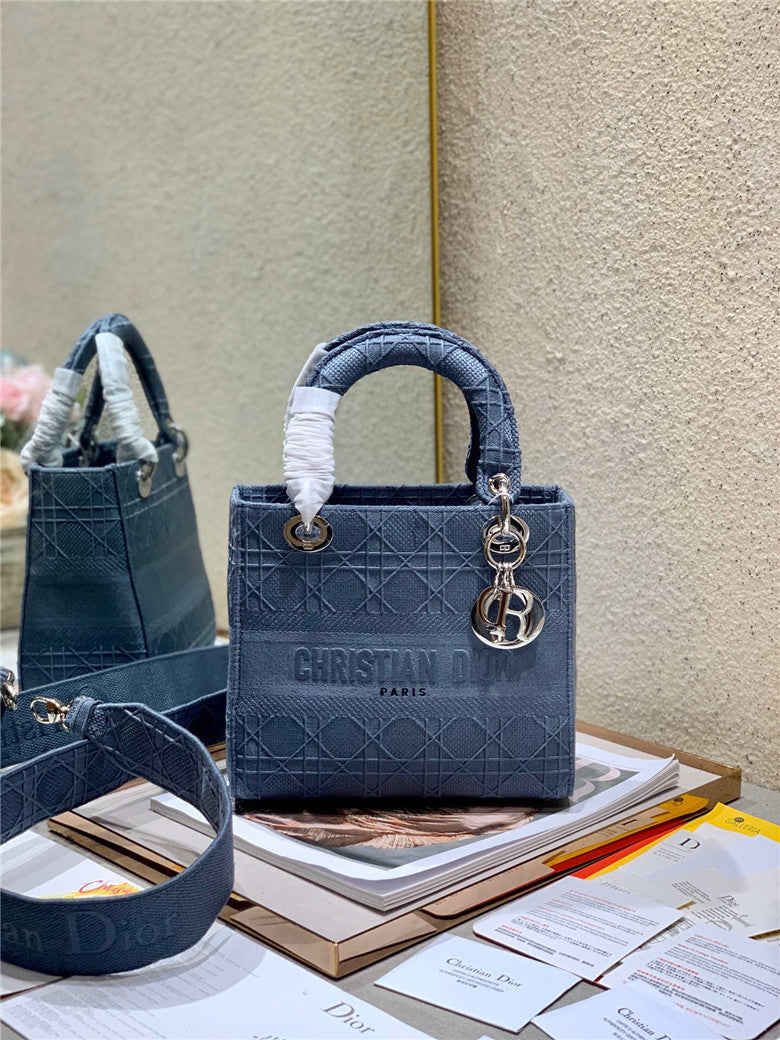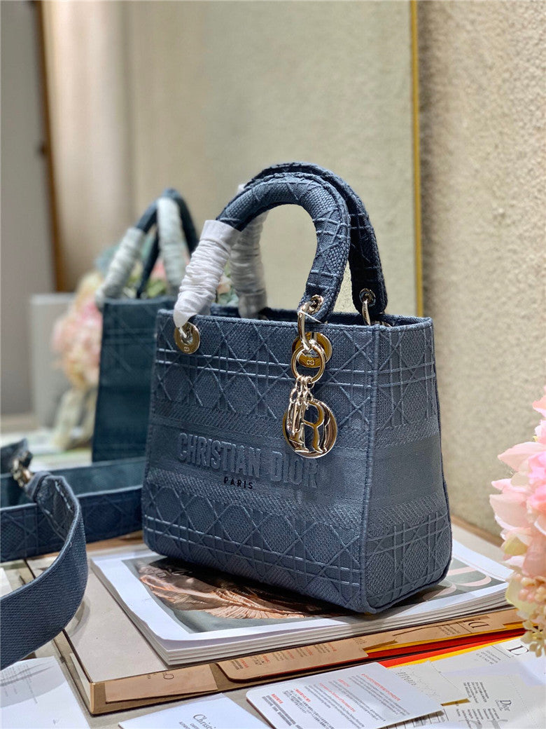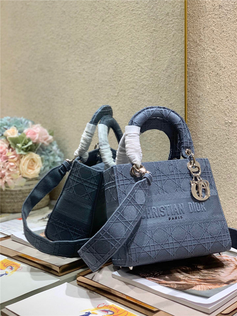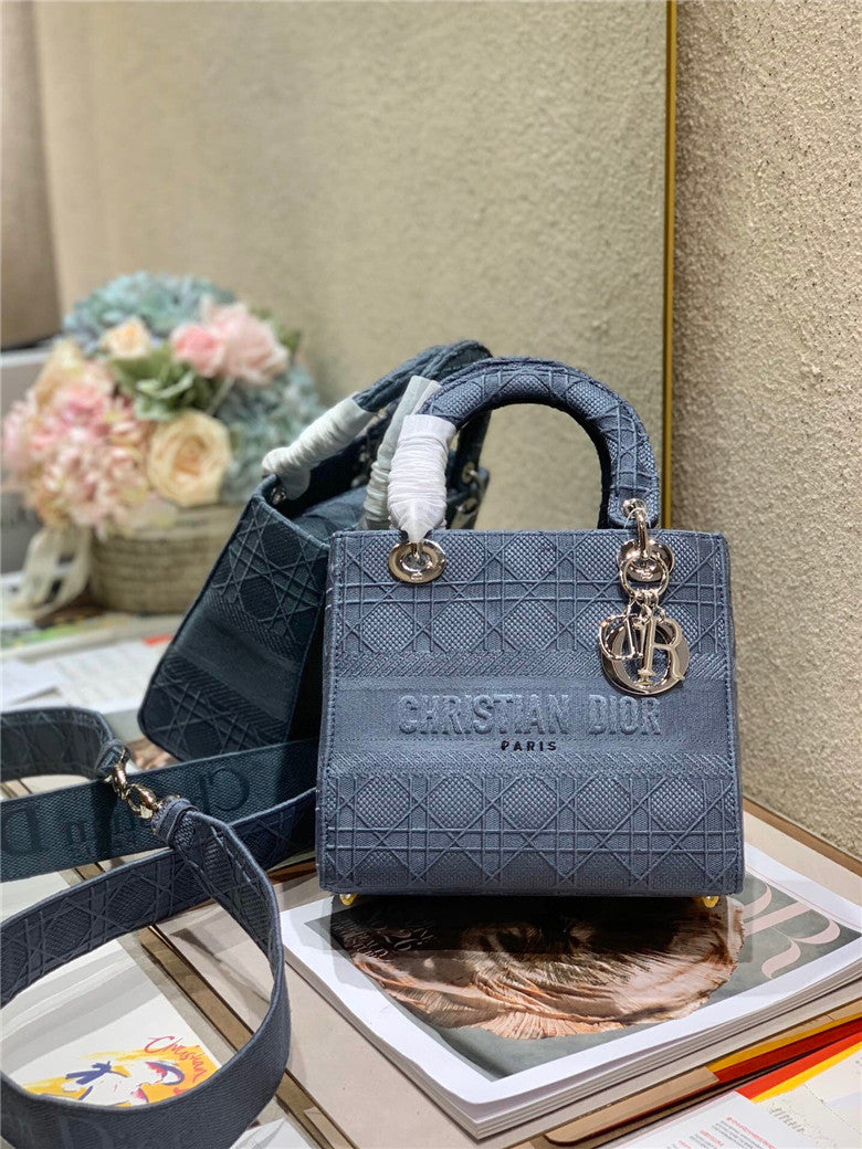【DIOR】雑誌掲載!中村アンさん愛用!憧れのMedium Lady D-Lite Bag! 刺繍キャンバス グレー バッグ【バッグ】