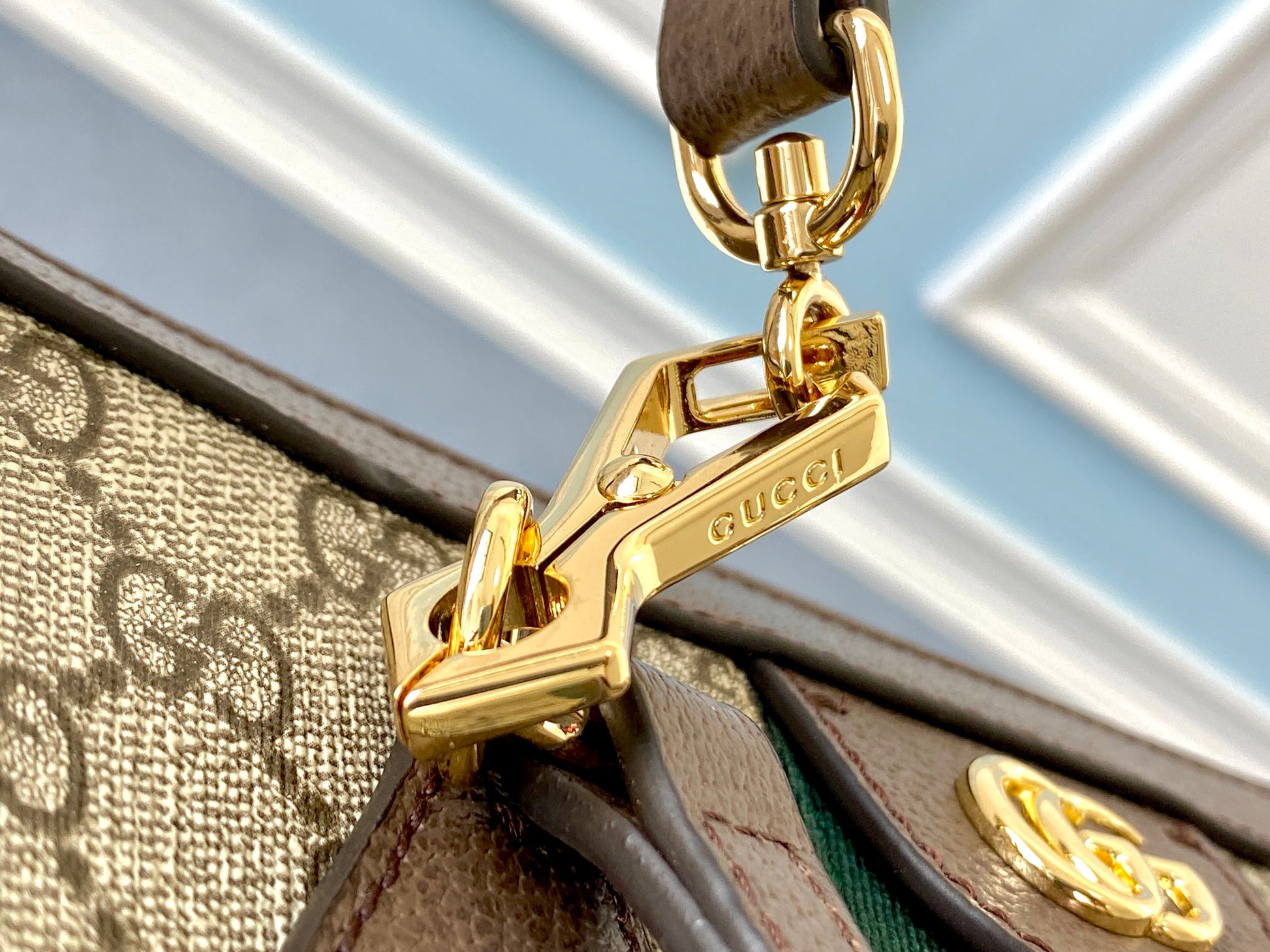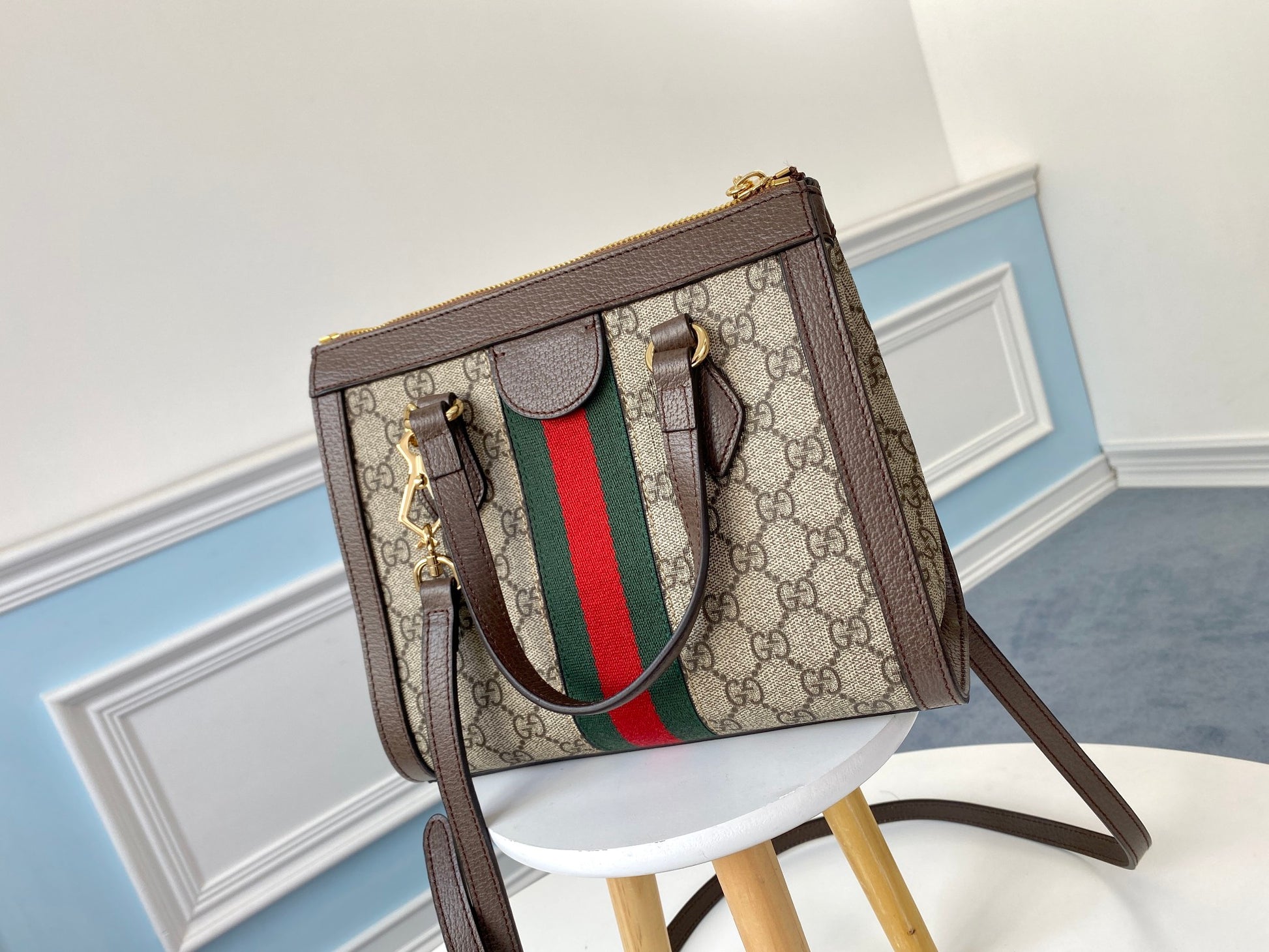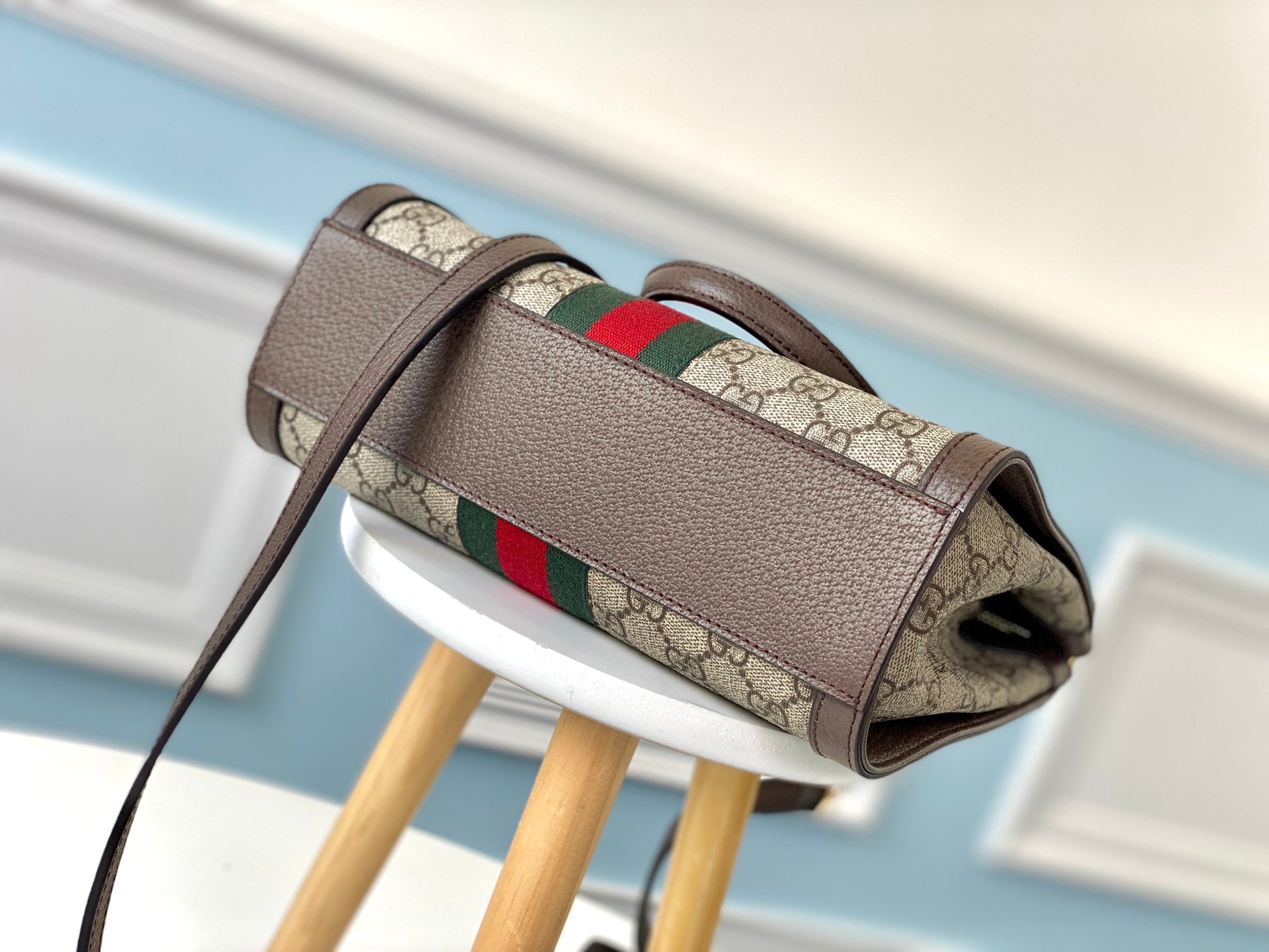 〔オフィディア〕ラインの新作スモール トップハンドル トートバッグ。GGスプリーム キャンバスに、グリーン/レッド/グリーンのウェブ ストライプがはめ込まれ、1970年代のアーカイブから取り入れたダブルGが、レザーのタブ ディテールとジッパープルのトップに飾られています。取り外し可能なショルダーストラップ付きで、様々なスタイルでご使用いただけます。