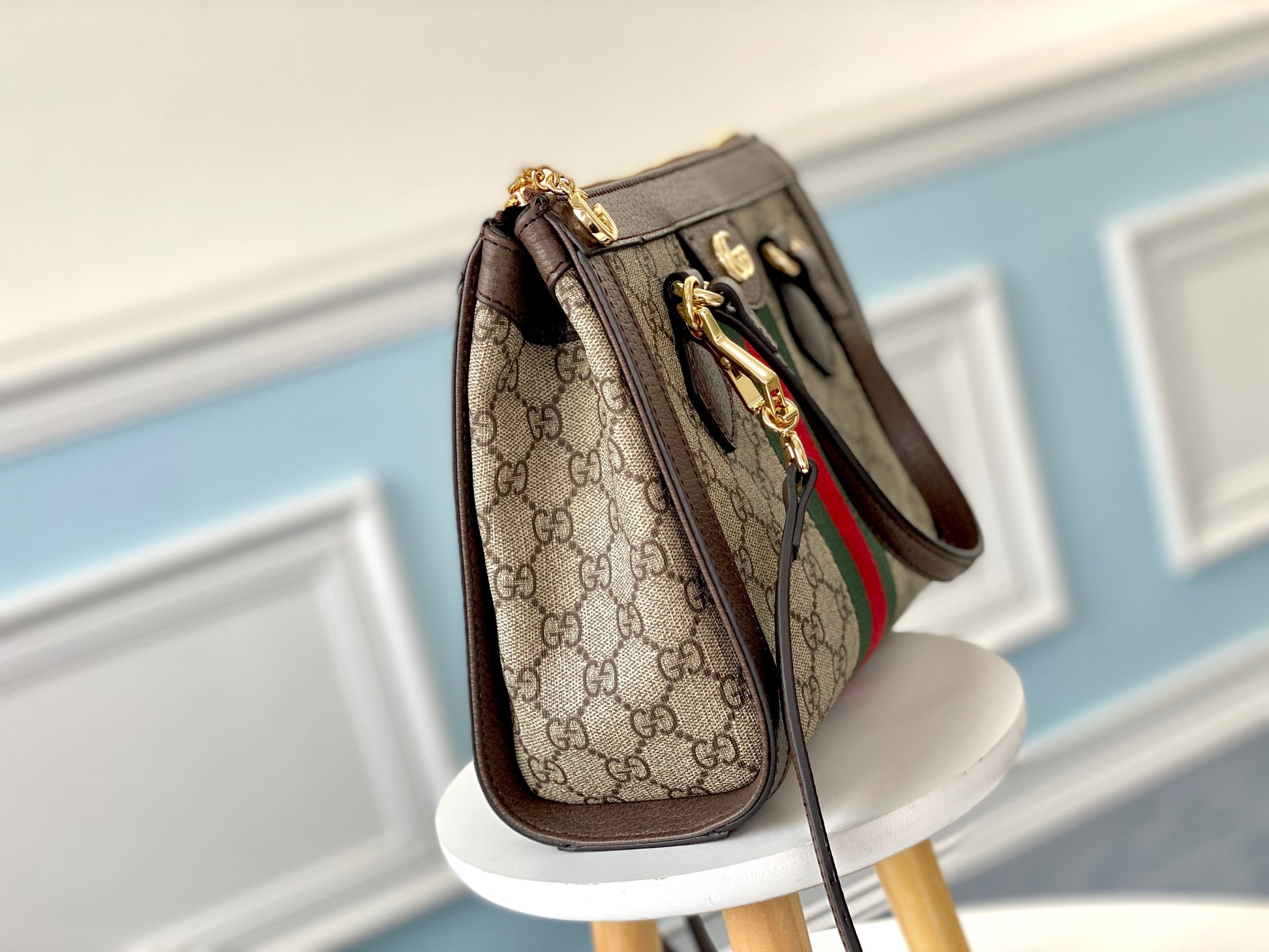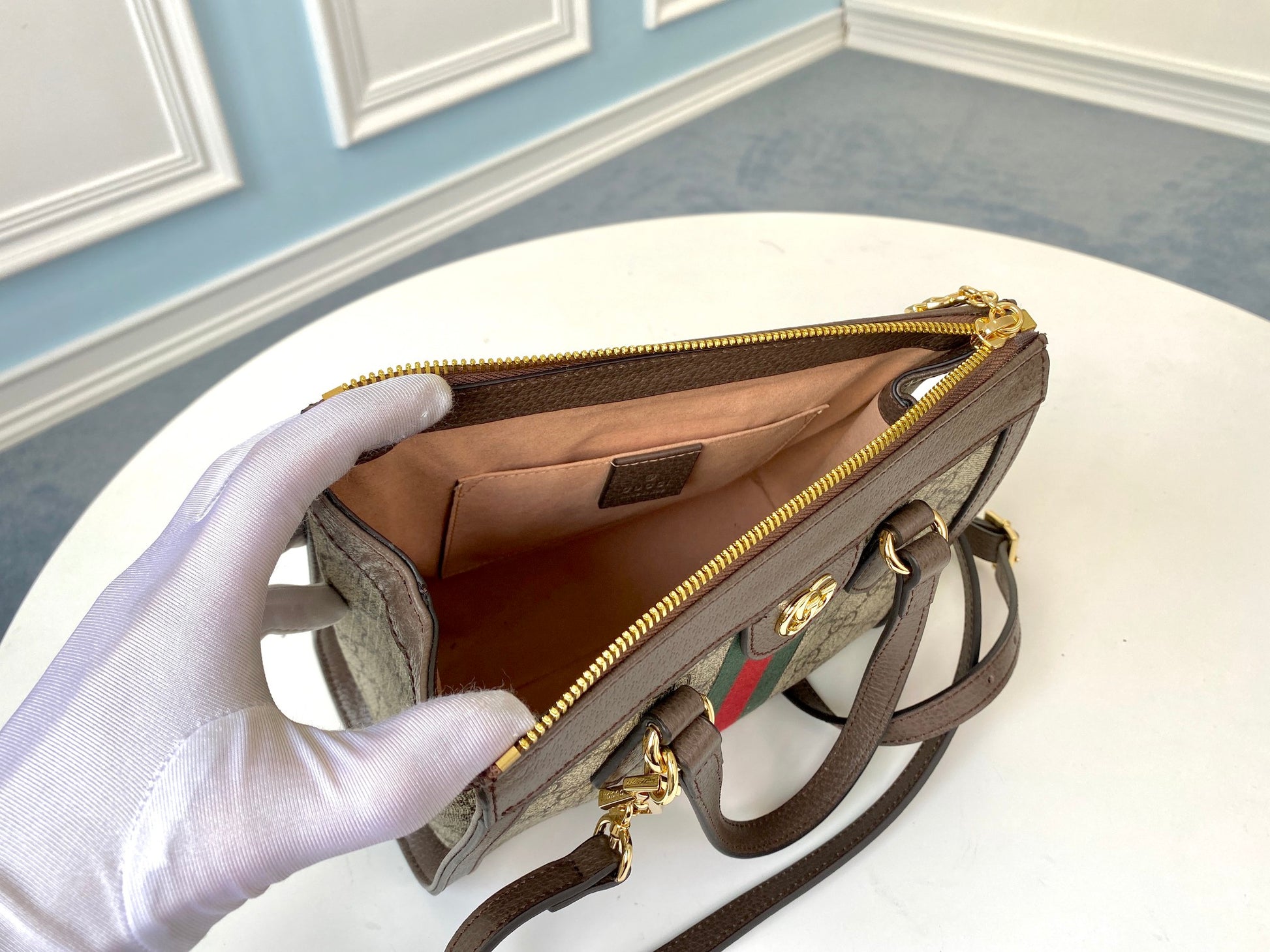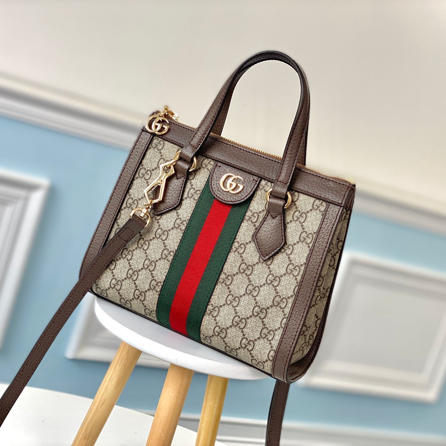 〔オフィディア〕ラインの新作スモール トップハンドル トートバッグ。GGスプリーム キャンバスに、グリーン/レッド/グリーンのウェブ ストライプがはめ込まれ、1970年代のアーカイブから取り入れたダブルGが、レザーのタブ ディテールとジッパープルのトップに飾られています。取り外し可能なショルダーストラップ付きで、様々なスタイルでご使用いただけます。