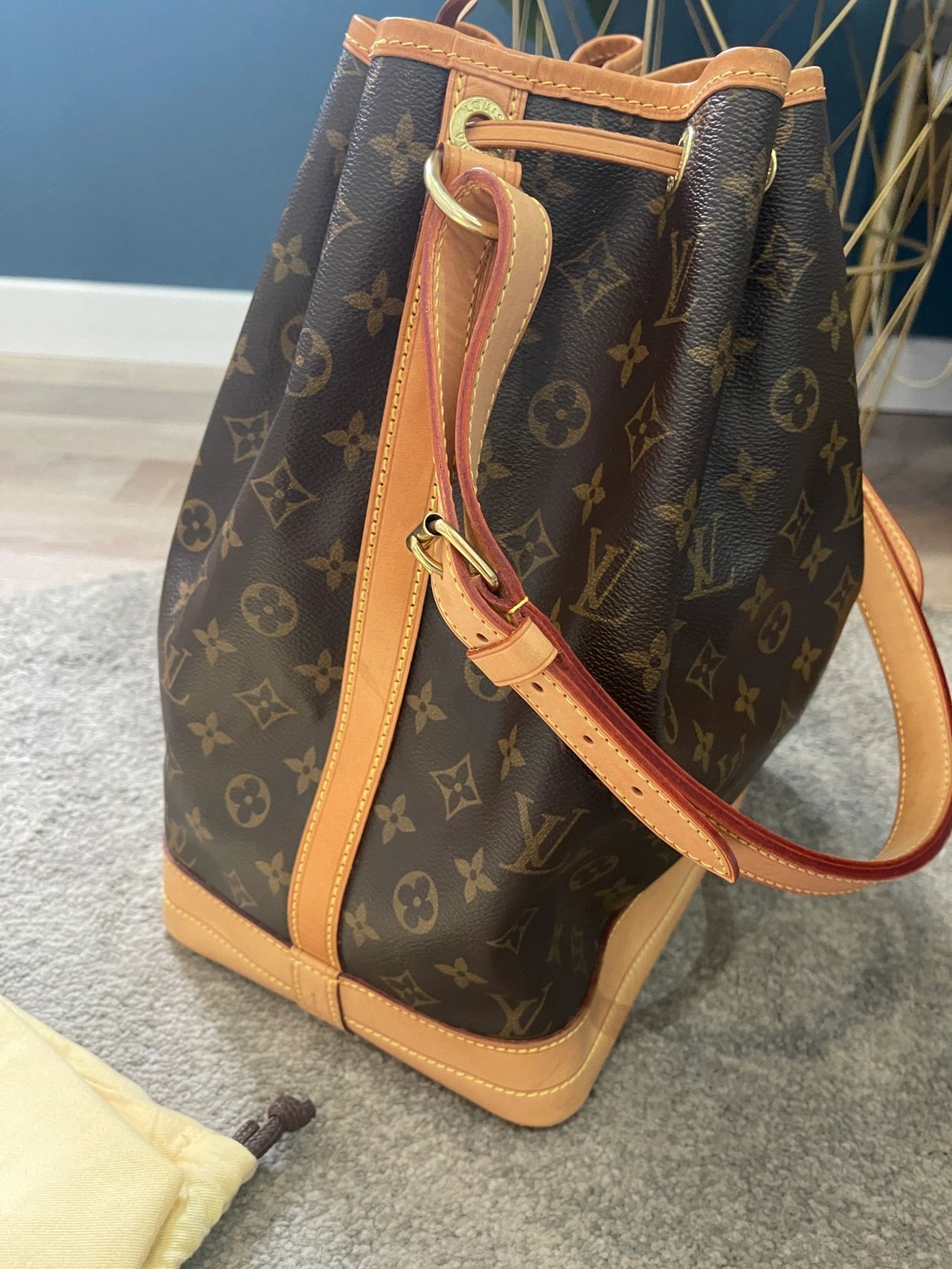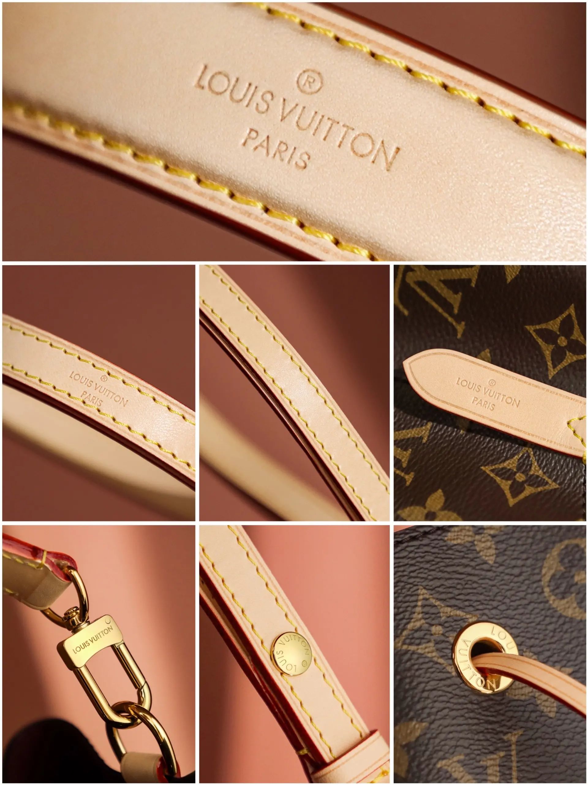 1932年の誕生当時のデザインを彷彿させるバッグ「プチノエ」。前身である「ノエ」は ガストン-ルイヴィトンがあるシャンパン製造業者から 5本のシャンパンボトルを持ち運びできる堅牢でスタイリッシュなバッグを依頼されたことをきっかけに誕生したもの。アイコニックなフォルム 高い収納力 ドローストリングといったオリジナルのディテールを保ちながら モノグラムキャンバスで現代風にアップデートしたコンパクトサイズが魅力。調節可能なレザーストラップで ショルダーバッグとしてもお楽しみいただけます。