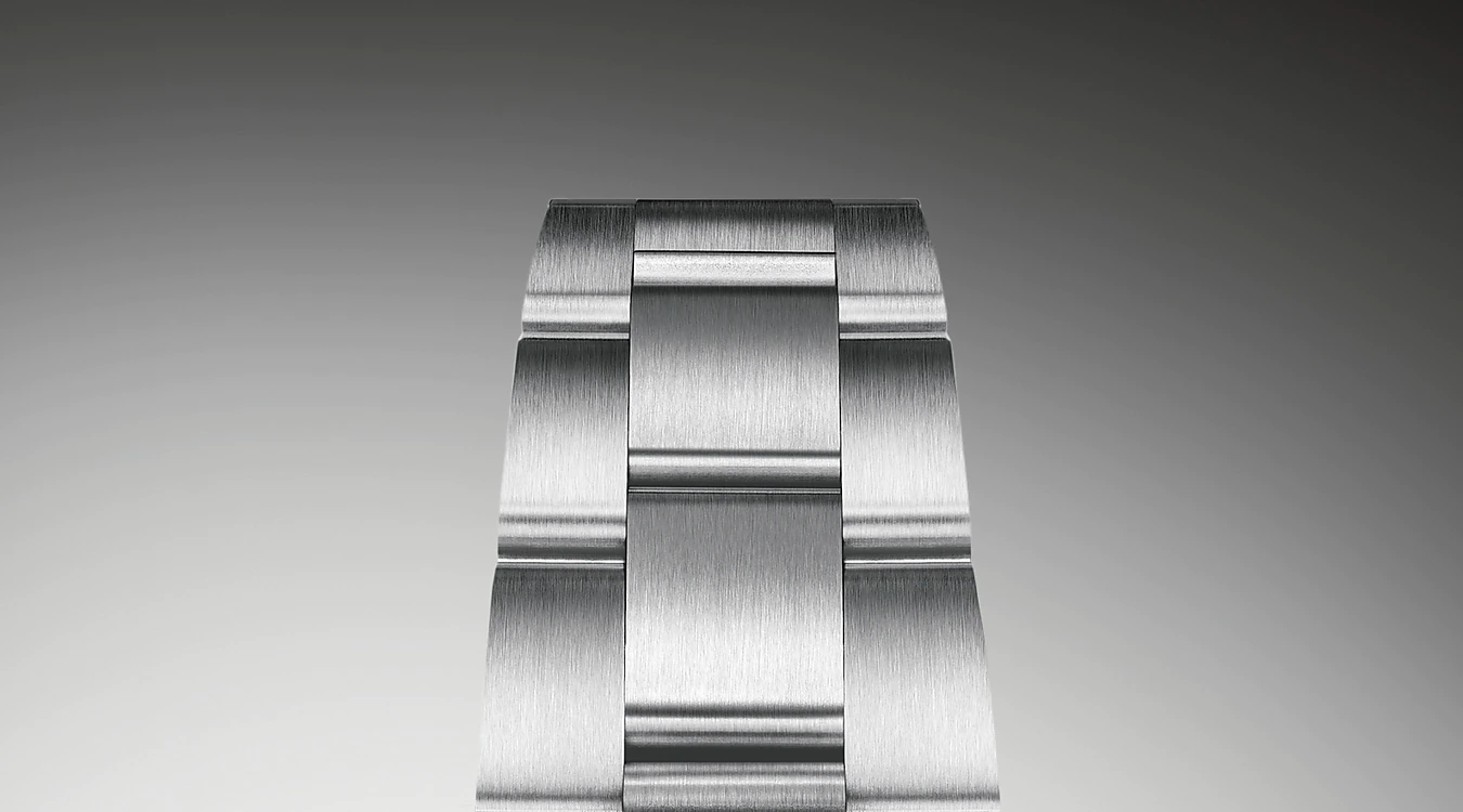 オイスターブレスレットは 形と機能 美しさと技術の完璧な融合である。1930年代後半に初めて発表された極めて堅牢で優れた金属のブレスレットで 幅広の平らな3列リンクで構成された オイスターコレクションの中で最も一般的なブレスレットである。オイスター パーペチュアルモデルでは オイスターブレスレットにオイスタークラスプが採用されている。