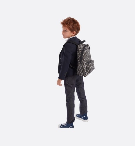 -87%キャンバスと黒い粒の面の小さい牛革のDior Obliqueリュックサックは、「DIOR」ゴムのマークを付けています。
