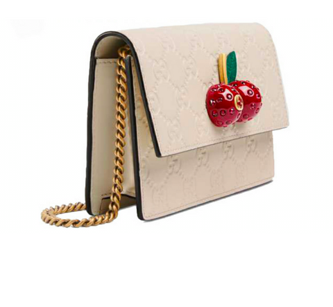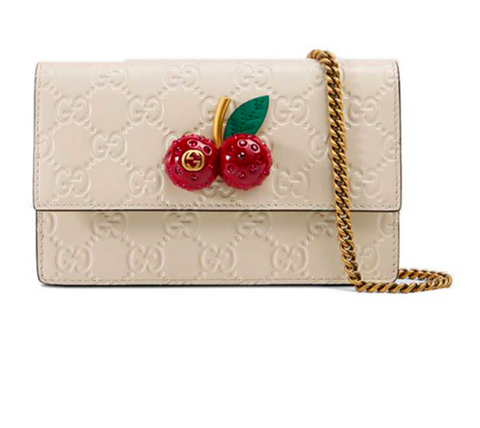 大人気♪グッチグッチシグネチャーコレクションチェリーレザーショルダークロスボディバッグミニウィメンズホワイト