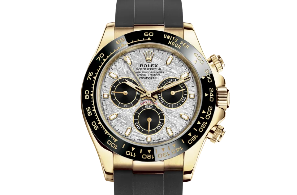 1963年に発表されたオイスター パーペチュアル コスモグラフ デイトナは、プロのレーシングドライバーのニーズに応えるために作られました。コスモグラフ デイトナは、ドライビングとスピードに情熱を捧げる人々のために設計されている。豊富なバリエーションと素材で展開されており、3時・6時・9時位置にブラックのクロノグラフカウンターを備え、宇宙に由来する希少な天然物質であるメタリックメテオライトで作られたダイアルのモデルもある。