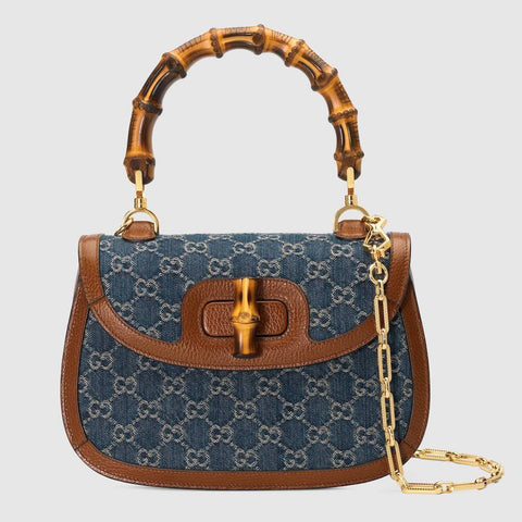 【日本限定】GG バンブー ショルダーバッグ デニム レザー