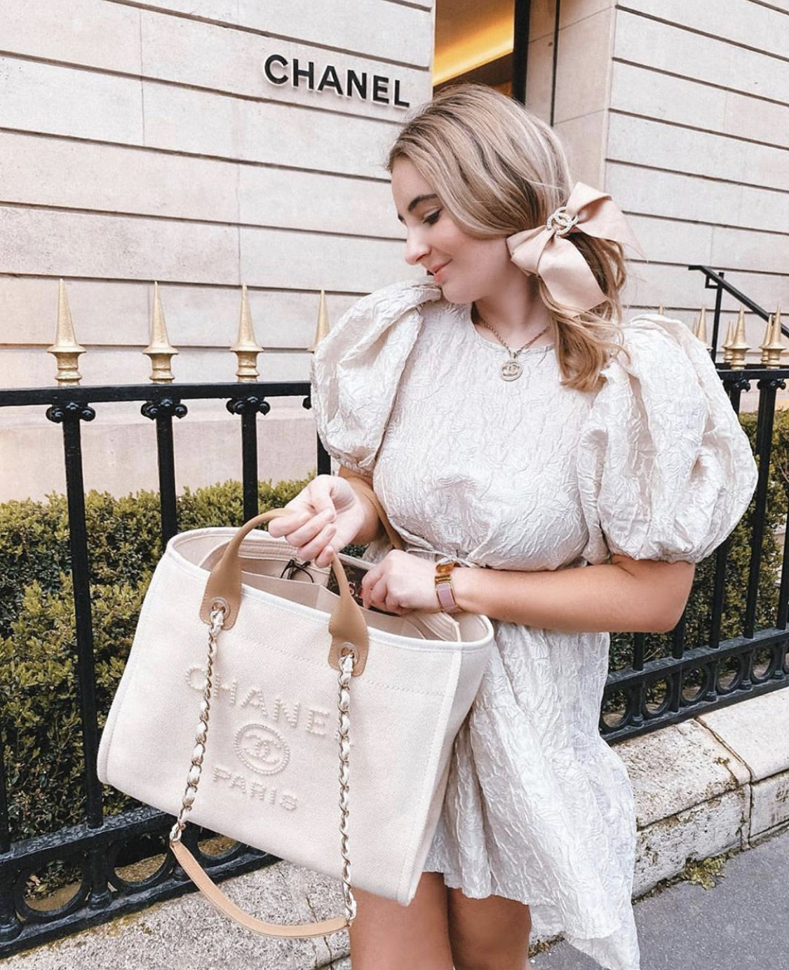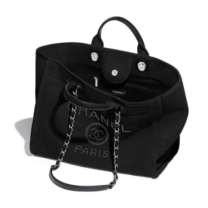 -85%♡♡♡毎度入荷後早期に完売してしまうDEAUVILLE(ドーヴィール)トートが入荷♡♡♡DEAUVILLE(ドーヴィール)の魅力ってやっぱり「シャネルロゴが目立って可愛い」ところ!今回はロゴ部分がパールになっている大人エレガントなデザインです。