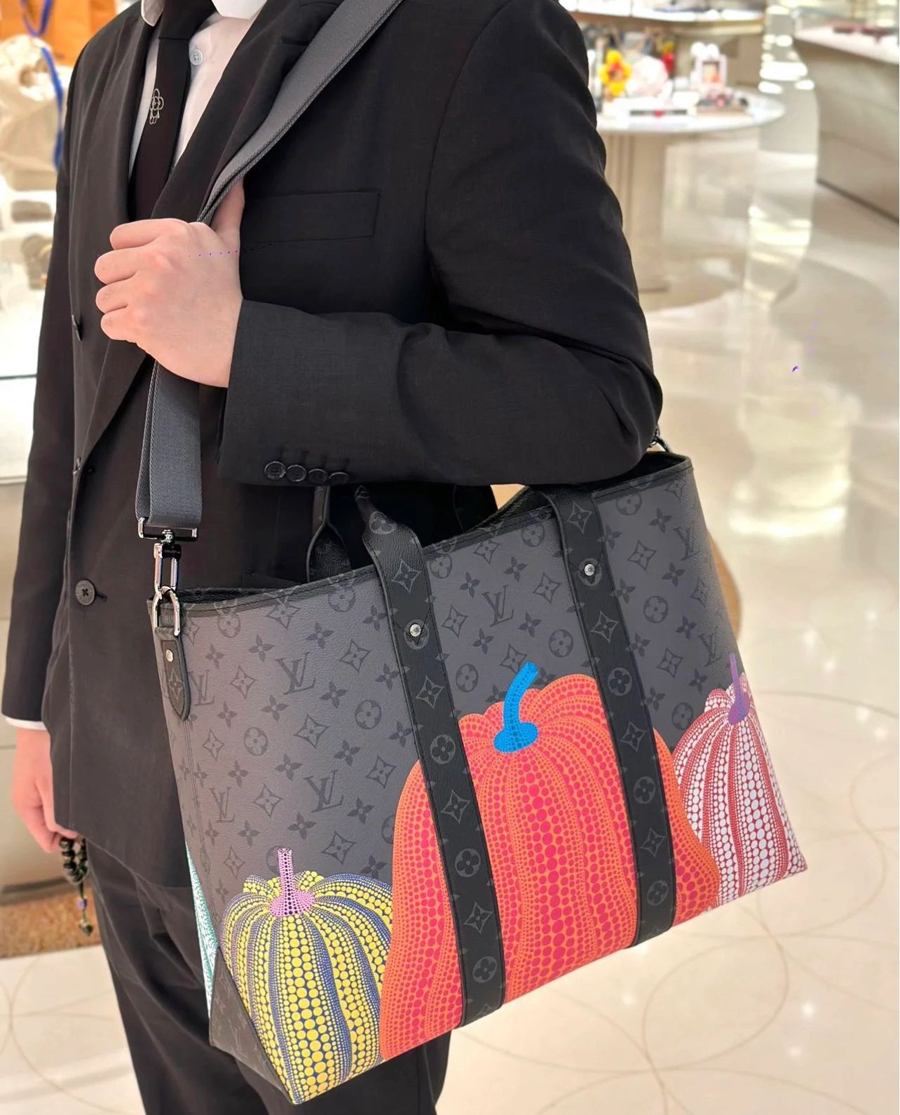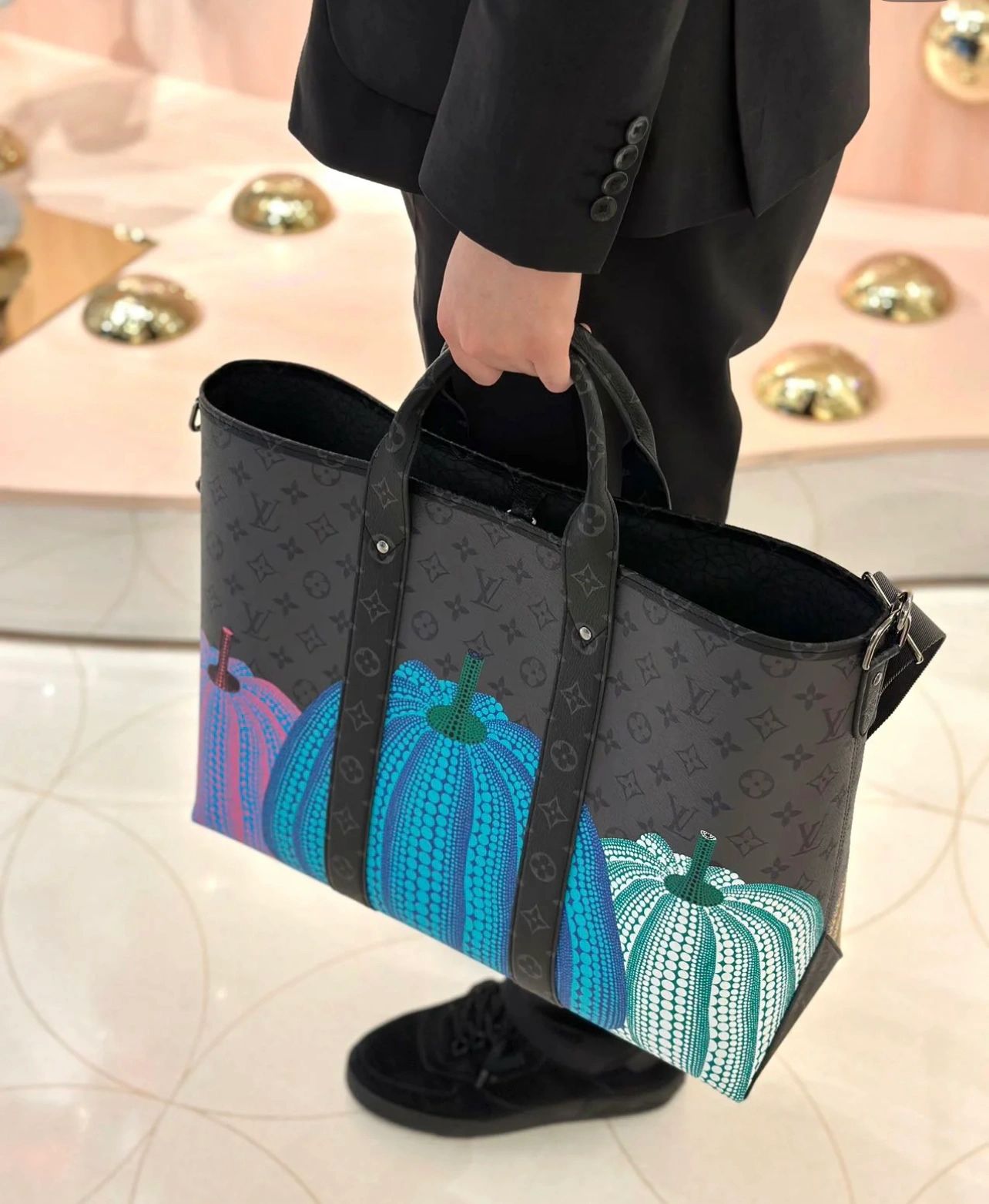 エクスクルーシブな「ルイヴィトン × 草間彌生」コレクションに登場した「LV × YK ウィークエンドトート」。メゾンの伝統的なモノグラムパターンと 日本人アーティスト 草間彌生を象徴するカボチャという タイムレスな2つのアイコンを組み合わせました。幼少期からカボチャに魅了され その温かみのある人間らしい佇まいに心惹かれてきた草間。実用的で大容量のトートバッグにプリントされたカラフルな「パンプキン」のモチーフが 遊び心溢れるグラフィカルな存在感を放ちます。アートに造詣が深い方やモノグラムパターンを愛する方にも最適な コレクターズアイテムです。
