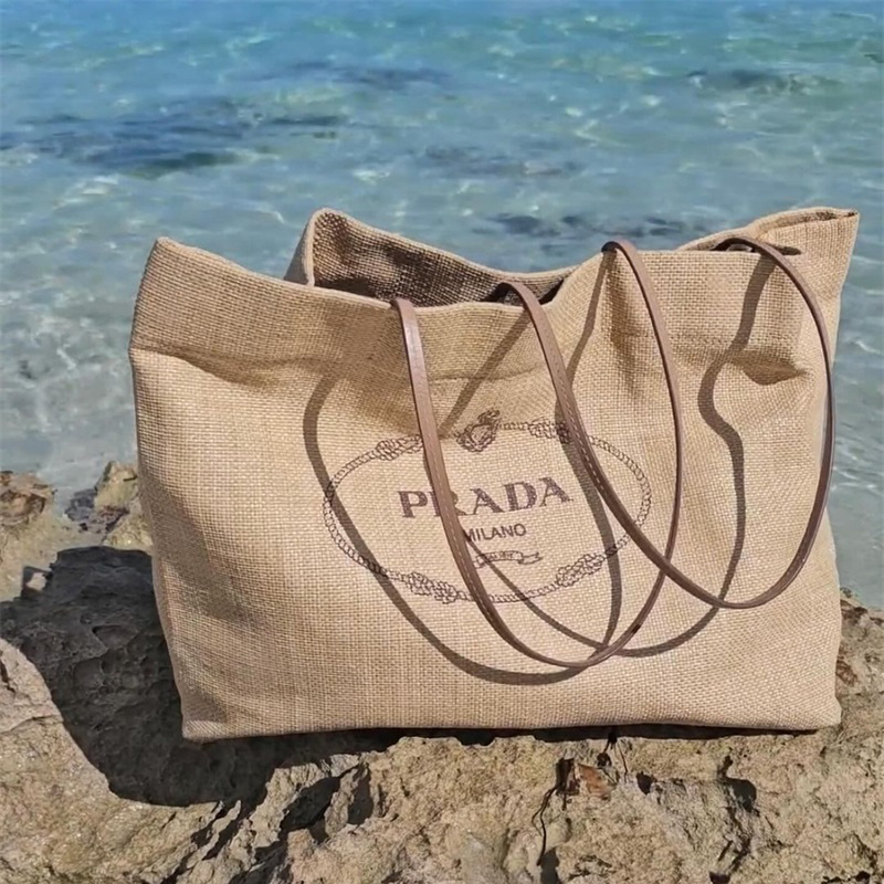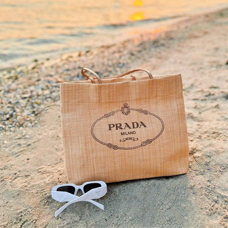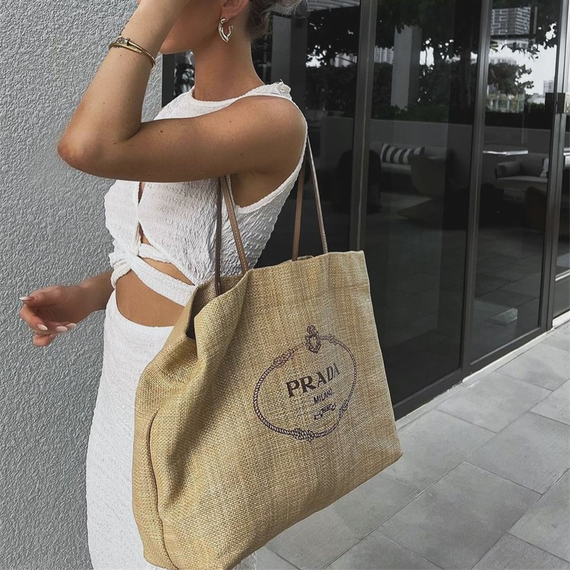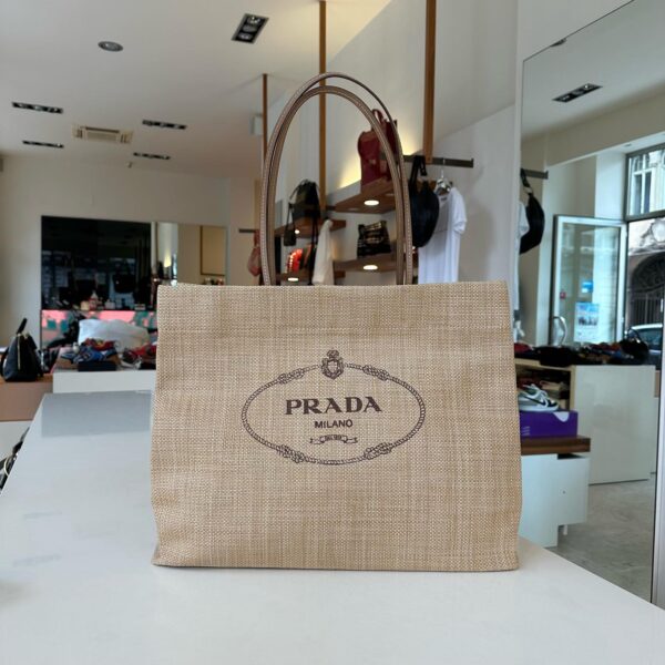 ラフィアとレザー仕上げのプラダ ギフトバッグ
