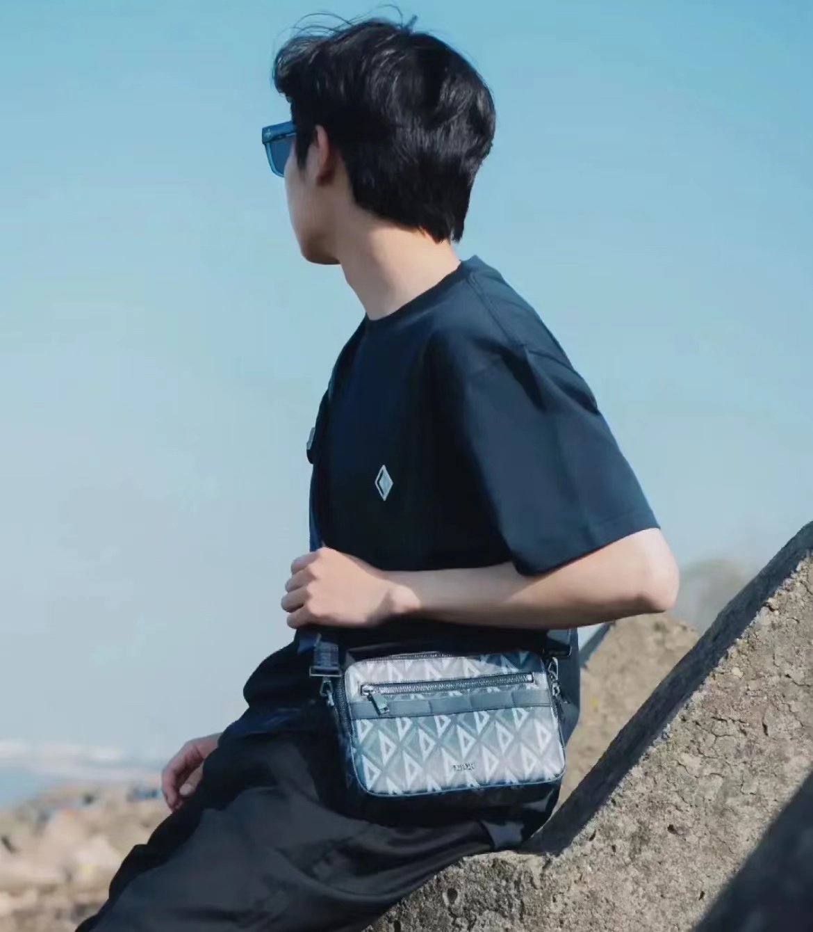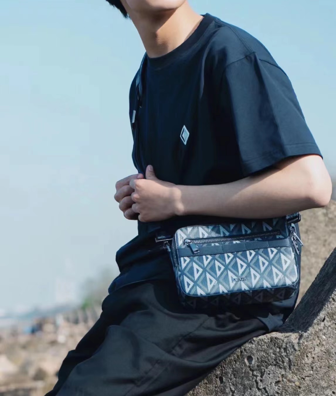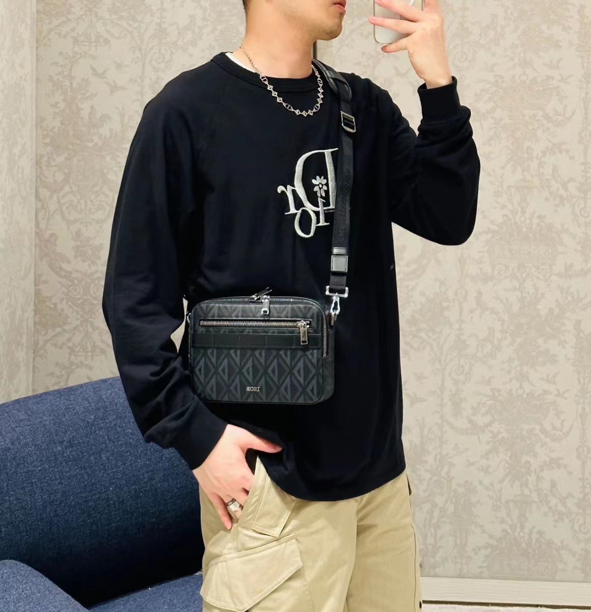 「CD ダイヤモンド」キャンバス1974年にマルク・ボアンがデザインしたグラフィカルな「CD ダイヤモンド」のデザインを 建築的なラインのダイヤモンドで構成されたCDイニシャルで再解釈し オーガニック コットンキャンバスに装飾。スムースカーフスキンフロントにルテニウムコーティングの真鍮製Diorシグネチャー内側にエンボス加工のDiorシグネチャートップにダブルジップクロージャー取り外し・長さ調節可能なカーフスキン & ナイロンジャカードのChristian Diorショルダーストラップフロントにジップポケット