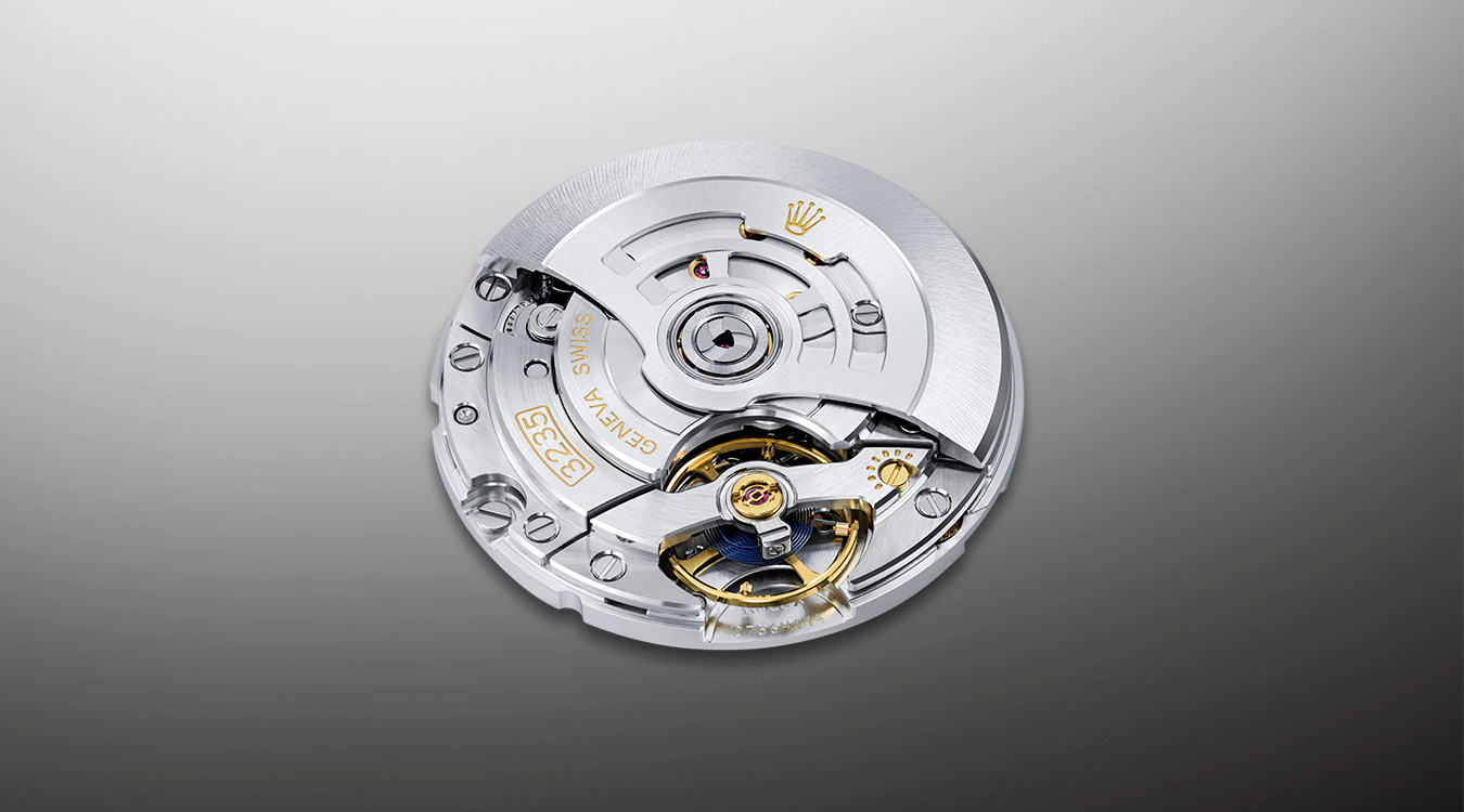 キャリバー3235は ロレックスが開発・製造した新世代ムーブメントで この機械式自動巻ムーブメントは 時計製造の最前線にある。14 件の特許を取得したロレックスの技術を最大限に示しながら精度 パワーリザーブ 耐衝撃性と耐磁性 快適な使用感と信頼性のすべてにおいて抜本的な進歩を遂げている。キャリバー 3235 にはロレックスが特許を取得した新しいクロナジーエスケープメントが採用されており 高いエネルギー効率と信頼性を実現した。ニッケル・リン合金製のため 磁場の影響を受けることもない。