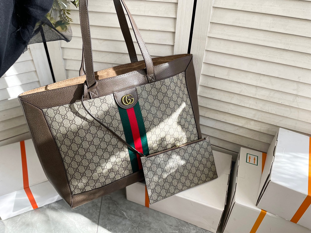 〜ブランド直営店または正規取扱店のギフトラッピングでお届けしますのでプレゼントにも好適です♪〜GUCCI グッチの〔オフィディア〕GG トートバッグのご紹介です。GGパターンとウェブ ストライプという、グッチを最も象徴するエレメントをクラシカルに融合した〔オフィディア〕ラインに、新たなフォルムとシルエットの新作が登場。このソフト GGスプリーム キャンバスのワイドトートバッグは、トリムに質感のあるレザーを使用し、トップをダブルG ハードウェアが飾ります。GUCCIならではの個性とこだわりが詰まったデザインが美しい、ハイセンスかつ上質な逸品。さまざまなシーン、スタイルに合わせてお楽しみください。
