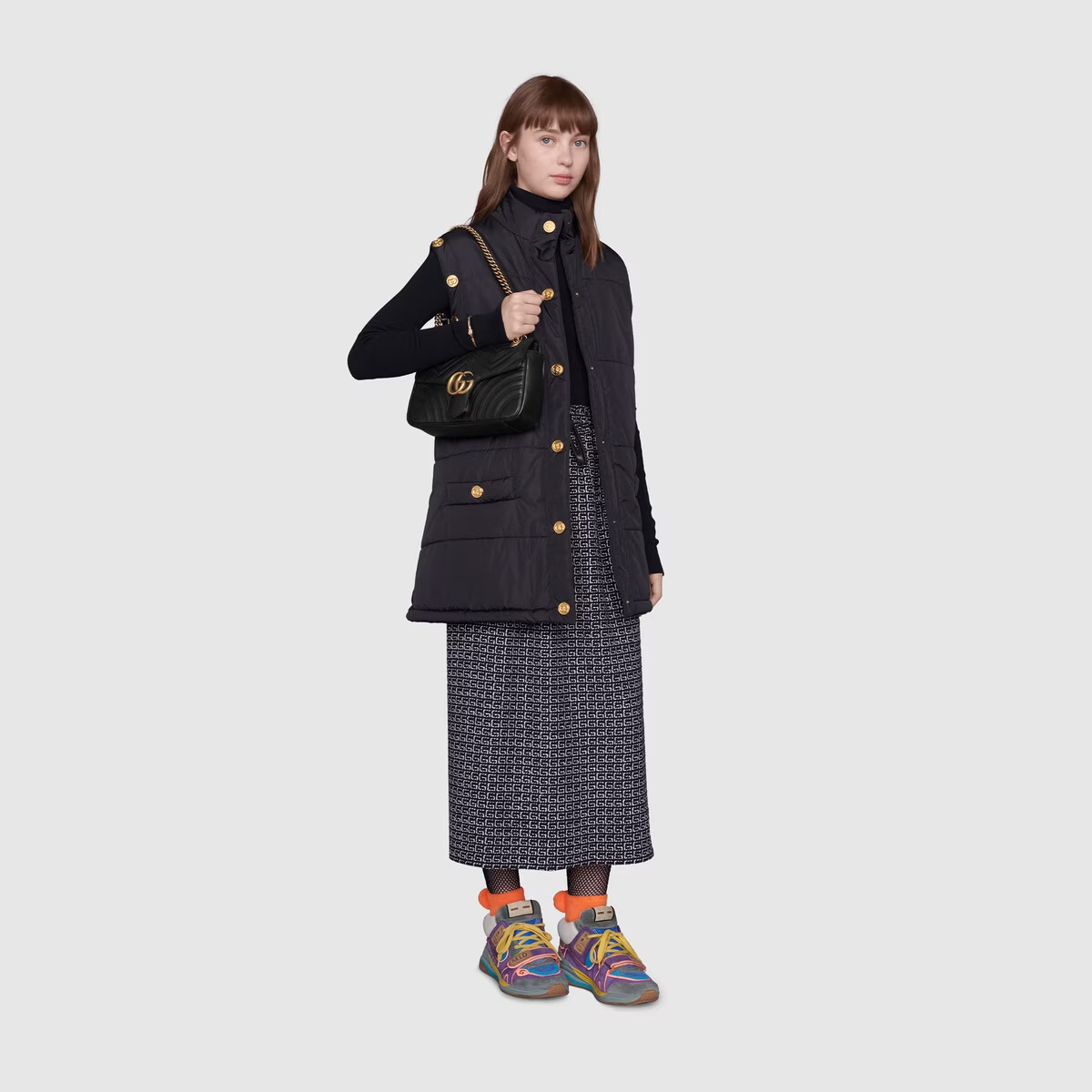 製品詳細ソフトなストラクチャードシェイプが特徴的なスモールサイズの〔GGマーモント〕 チェーンショルダーバッグ。オーバーサイズのフラップ クロージャーにダブルG ハードウェアがあしらわれています。スライド式チェーンストラップにより、ショルダーバッグからトップハンドルバッグまでさまざまなスタイルでご使用いただけます。バックのGGが印象的なキルティング シェブロンレザー製。