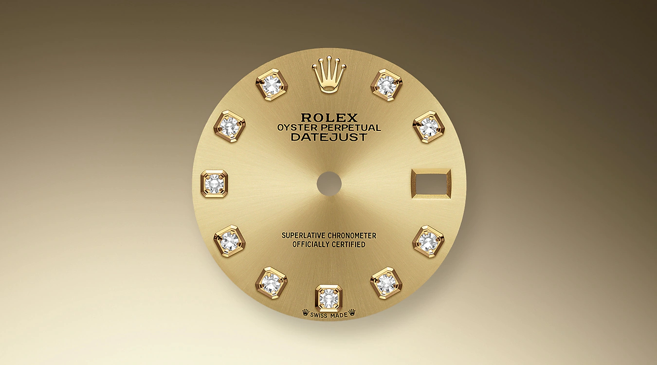 サンレイ仕上げは オイスター パーペチュアルコレクションの多くのダイアルに繊細な光の反射をもたらす。これはダイアルの中心から外側に向かって溝を作る 熟練のブラッシング技術によるものだ。光はそれぞれの彫りに沿って均一に拡散され 手首の位置に応じてわずかに動く 特徴的な輝きを生み出す。サンレイ仕上げが完了すると 物理蒸着または電気メッキによりダイアルにカラーが塗布される。軽くニスでコーティングし ダイアルの最終的な外観が完成する。